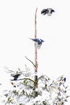 The third and last of a trio of images chronicling the apparent meeting of a group of magpies congregating on a dying tree in the middle of a winter ...[+]